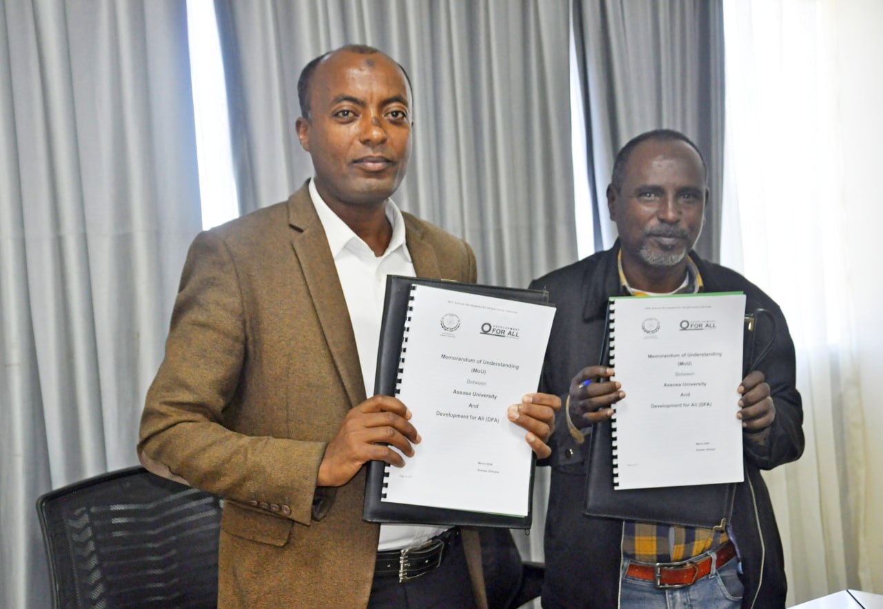 የመግባቢያ ስምምነቱ በአሶሳ ዩኒቨርሲቲ በዶ/ር ኡመር ሸሪፍ እና የልማት ለሁሉም በጎ አድራጎት ኦፊሰር በሆኑት በአቶ ፈንታሁን መለሰ ተፈርሟል።