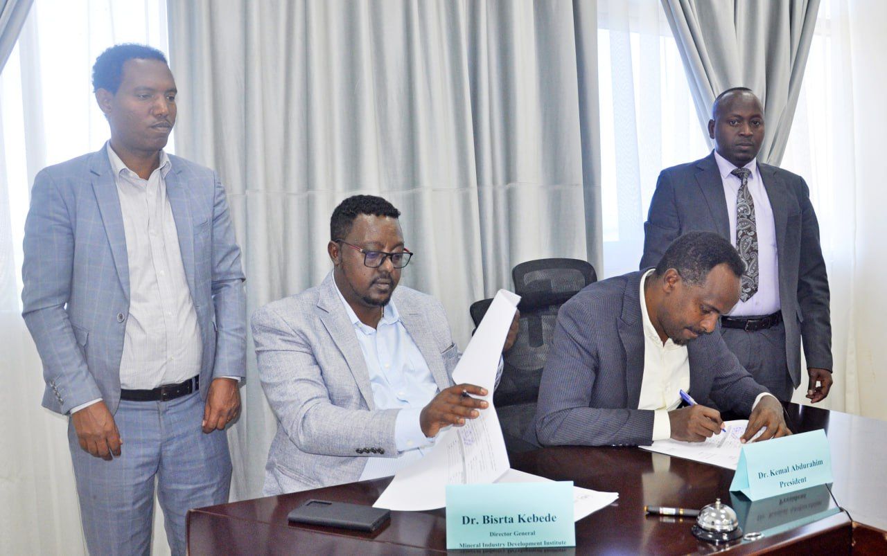 The two year consultancy agreement was signed by Dr. Kemal Abdurahim, President of Assosa University, and Dr. Bisrat Kebede, Director General of the Mineral Industry Development Institute.